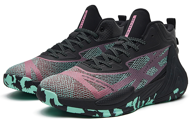 鸿星尔克 减震耐磨 中帮 实战篮球鞋 男款 黑紫绿