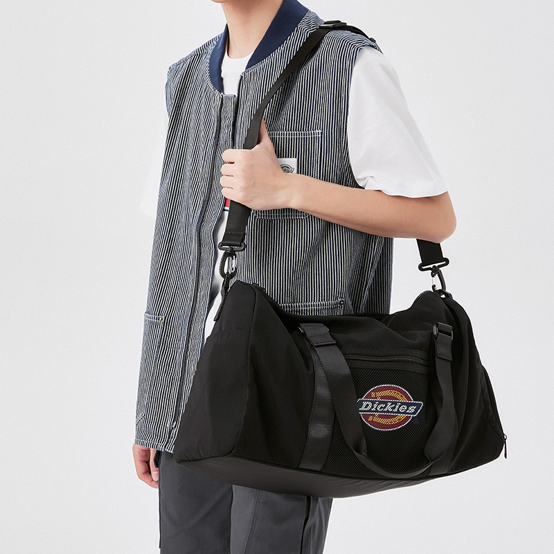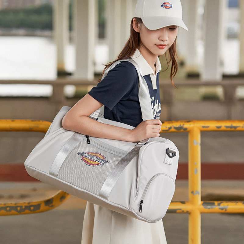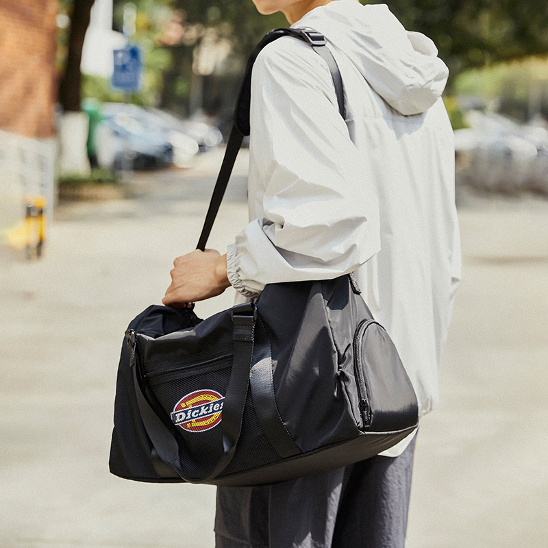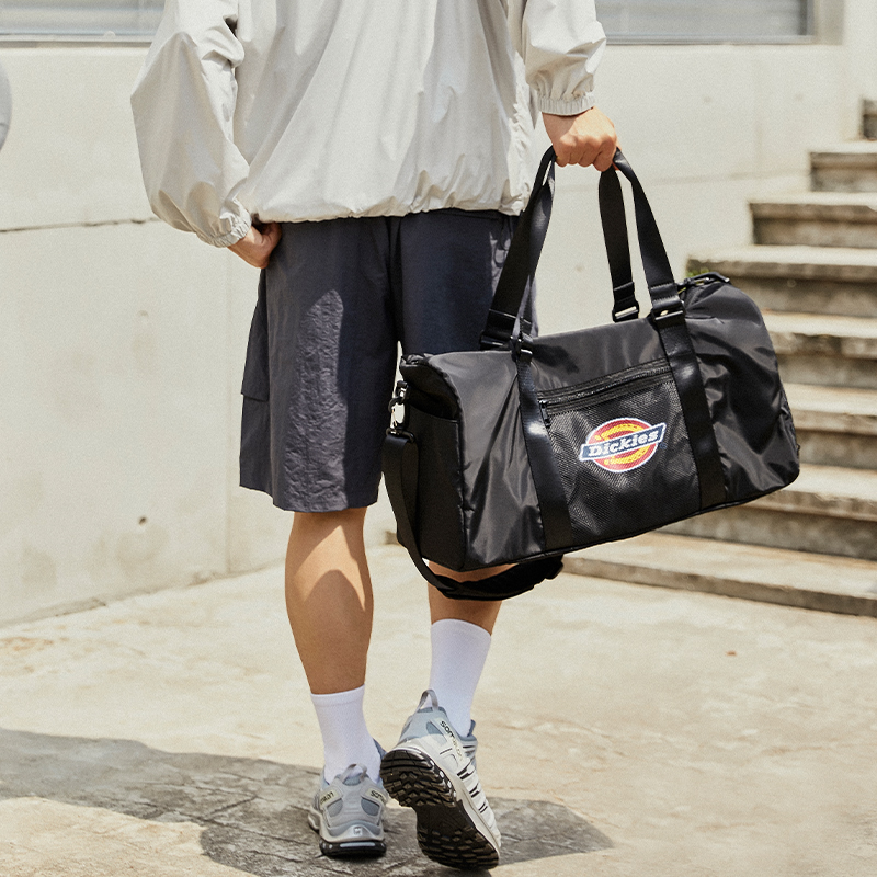 Dickies时尚潮流运动包是理想的旅行伴侣,设计独特的干湿分离功能和独立鞋仓,为您提供方便的旅行体验。这款包采用耐用的聚酯纤维材质制成,防泼水设计可保护您的物品不受潮湿影响。大容量的设计让您可以轻松装下所有必需的物品,而斜挎包行李袋的设计方便携带。适合男女同款情侣款,可供选择的黑色和浅灰色款式保证您的风格与时尚并存。Dickies时尚潮流运动包是健身包和旅行包的理想选择。 Описание сгенерировано ИИ, поэтому может содержать неточности.