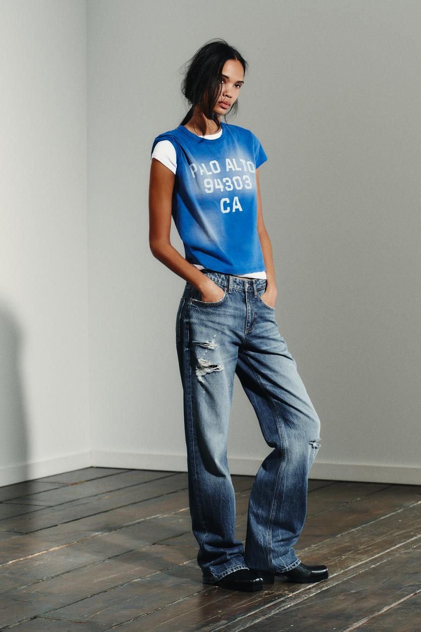 Джинсы со средней посадкой и пятью карманами. Очень широкие штанины. Детали с разрезами. Застежка на молнию и металлическую пуговицу спереди. Описание сгенерировано ИИ, поэтому может содержать неточности.