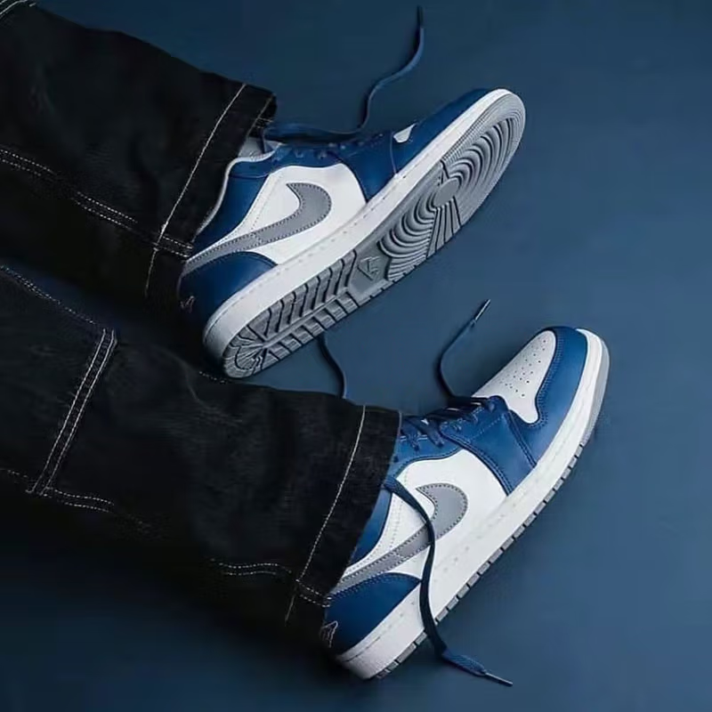 Jordan 1 Low True Blue - стильные детские кроссовки от известного бренда Jordan. Эта модель имеет низкую высоту, что делает ее удобной для повседневной носки. Кроссовки изготовлены из качественных материалов, обеспечивающих долговечность и комфорт. Дизайн кроссовок включает в себя комбинацию синего и белого цветов, что придает им стильный и модный вид. Будьте в тренде с Jordan 1 Low True Blue! Описание сгенерировано ИИ, поэтому может содержать неточности.