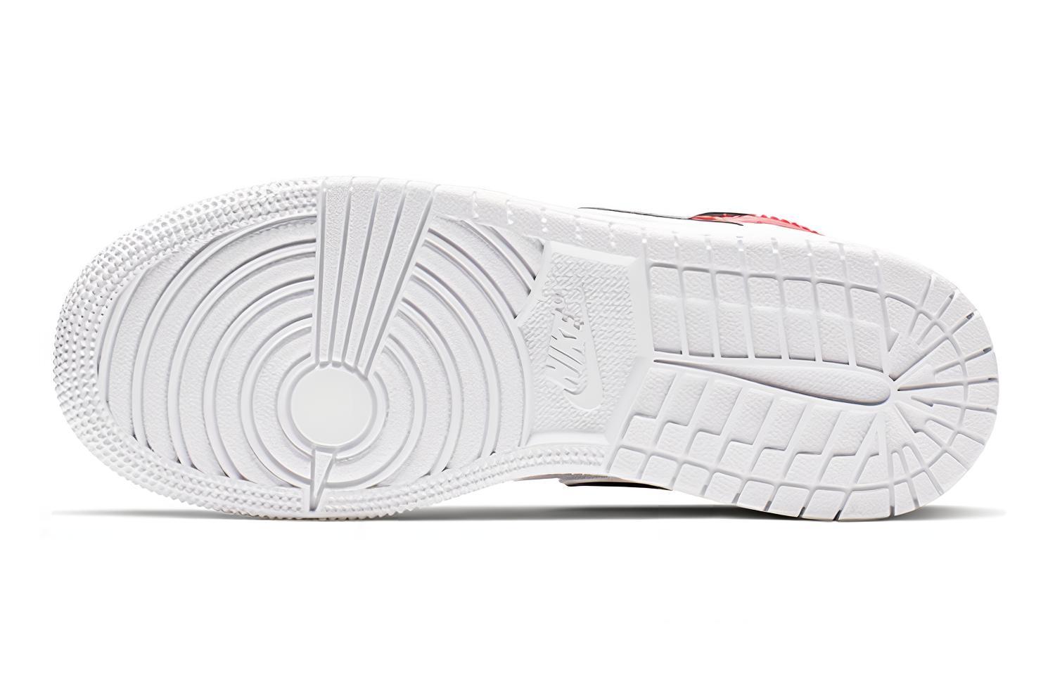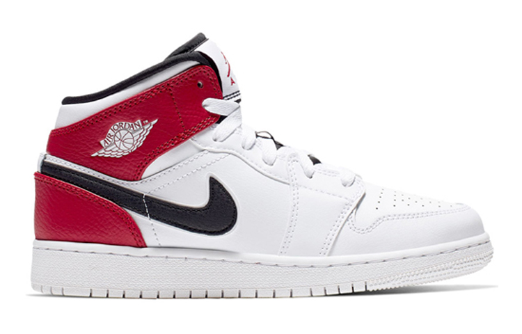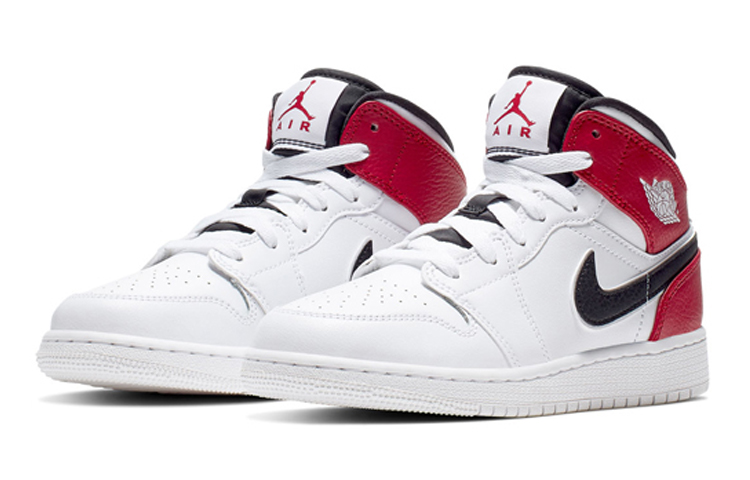 Кроссовки Jordan 1 Mid в цветах белого, черного и красного отлично подойдут как для повседневного, так и для спортивного стиля. Изготовлены из качественных материалов, обеспечивающих комфорт и долговечность. Стильный и универсальный дизайн делает их отличным выбором для любого возраста и пола. Описание сгенерировано ИИ, поэтому может содержать неточности.