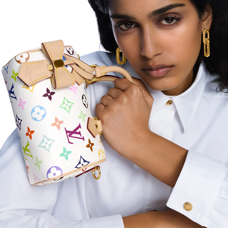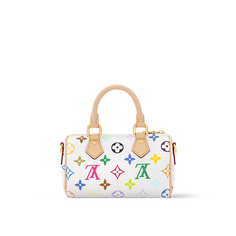 Представляем вам эксклюзивную сумку от LOUIS VUITTON в сотрудничестве с известным художником Такеши Мураками. Эта миниатюрная версия классической модели NANO SPEEDY выполнена из высококачественного покрытого канваса с ярким трехцветным дизайном. Сумка оснащена съемным и регулируемым плечевым ремнем, что позволяет носить её как на плече, так и в руке. Стильный микс белого и светло-коричневого оттенков придаёт ей современный и элегантный вид. Идеальный аксессуар для женщин, ценящих уникальность и художественный подход в моде. Описание сгенерировано ИИ, поэтому может содержать неточности.