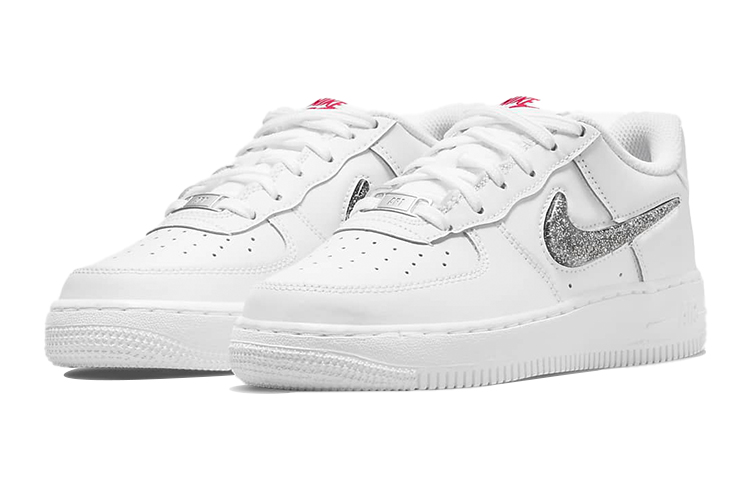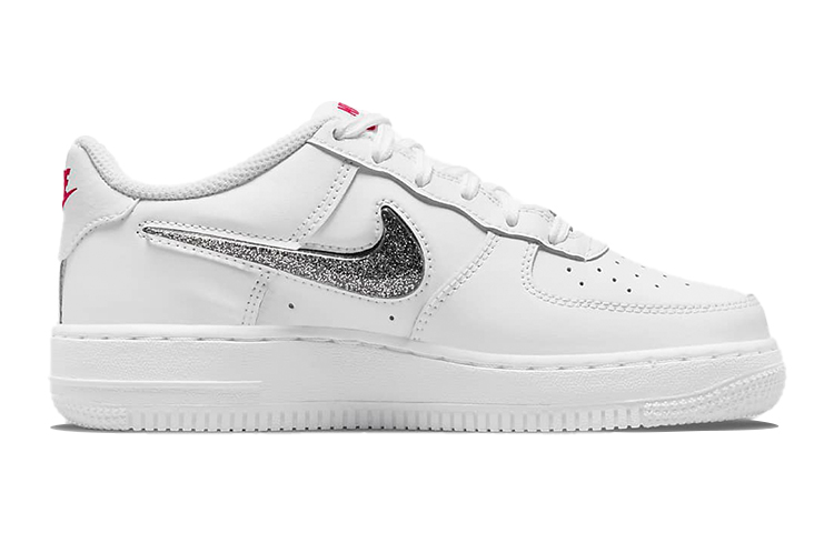 Эти кроссовки Nike Air Force 1 Low LV8 выполнены в белом цвете с металлическим серебряным оттенком. Удобная и стильная обувь для повседневного ношения. Верх кроссовок выполнен из качественного материала, а подошва имеет удобную амортизацию для комфортной походки. Идеальный выбор для тех, кто ценит стиль и удобство в обуви. Описание сгенерировано ИИ, поэтому может содержать неточности.