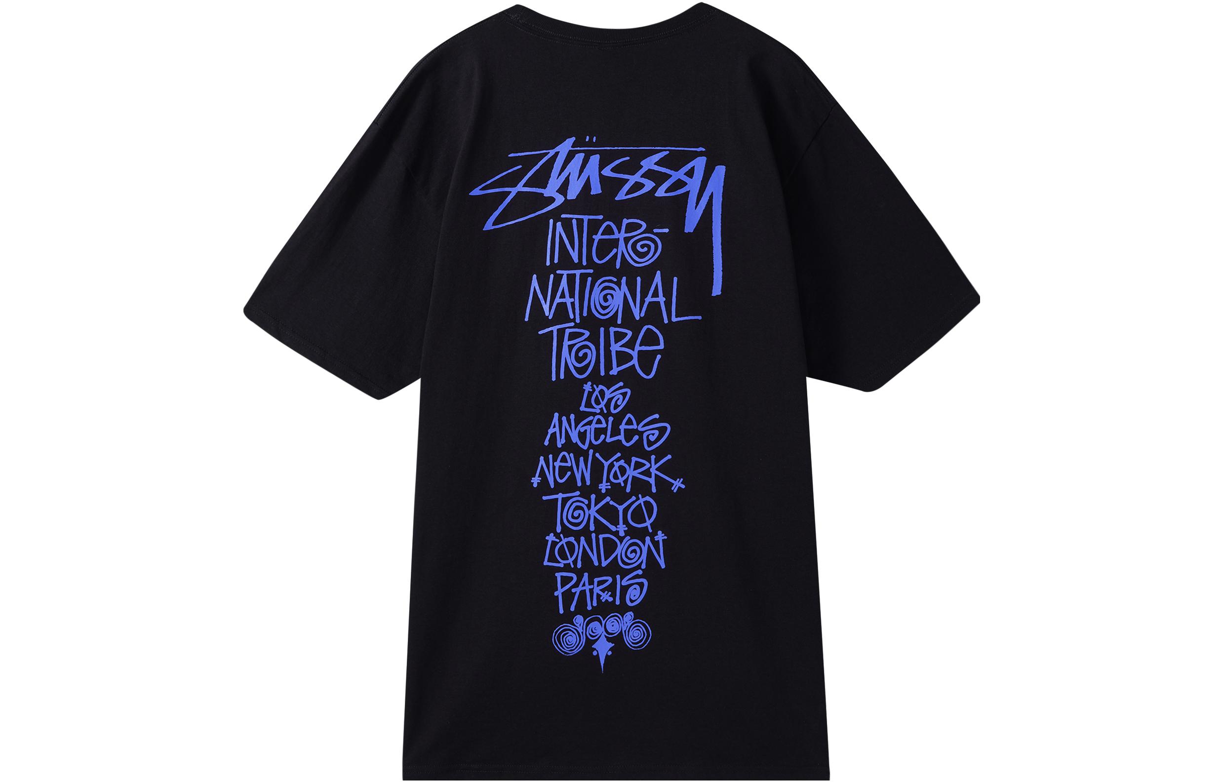 Стильная унисекс футболка из коллекции Stussy SS23 World Tour. На спине – ручной рисунок с надписью, посвященной мировому туру. Универсальный дизайн для комфортного повседневного стиля. Описание сгенерировано ИИ, поэтому может содержать неточности.